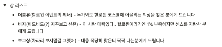 평가 방법은 구글 독스를 활용한 익명 투표로 진행되었고, 3개의 상품이 있었지요...🌟