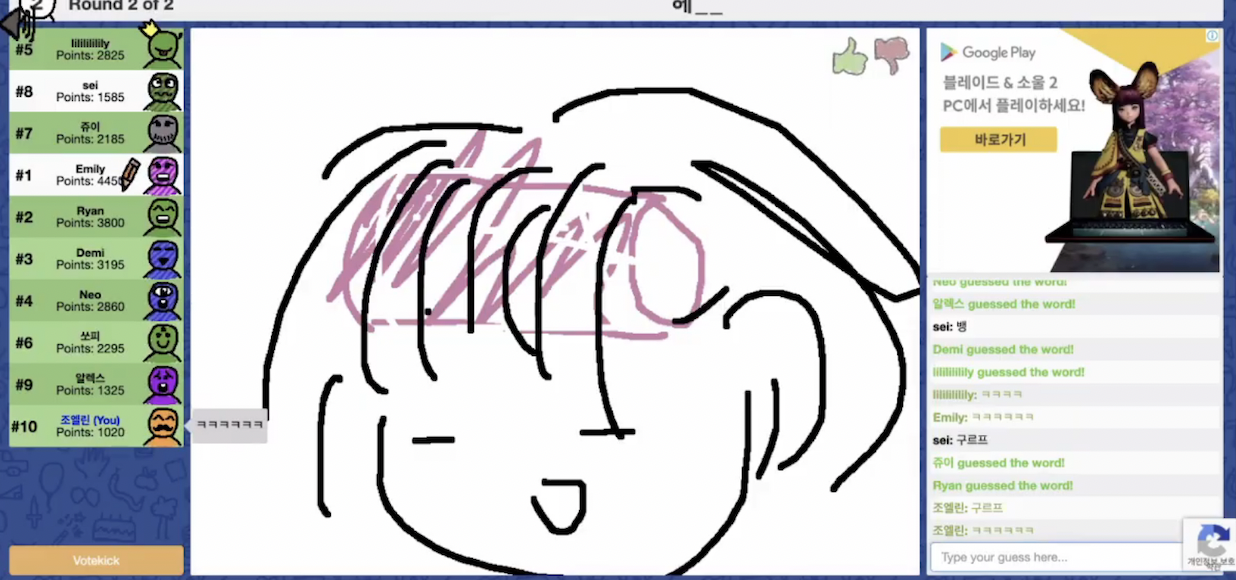 추석 놀이 대잔치 게임 중 가장 많은 그렙인이 참여해 주었는데요. 도전 1000곡이 있었다면 우승감이었을 에밀리와 에이다가 각각 11개, 8개를 맞추면서 마무리되었습니다.