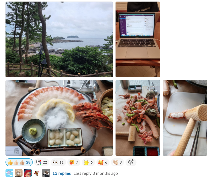 그러나 동시에 많이 듣는 질문은 '재택근무를 하는데 어떻게 회사가 잘 굴러가?'입니다. 어째서일까요? 확실히 대답할 수 있는 것은 재택근무를 잘하려고 많은 시도를 하고 있다는 것입니다. 재택근무의 단점을 보완할 수 있는 조직 문화를 만들고, 비용을 지원해서 활성화하고, 변화에 맞춰 조직 문화를 수정하기도 합니다.