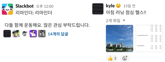 뚠뚠한 몸을 튼튼하게! 그렙의 운동 동호회 TIE(Today I Excercised)는 매일매일의 운동기록을 나누는 동호회예요. 매일 오후 12시가 되면 리마인더 봇이 운동 알림을 보내요. 이 글의 스레드로 각자 운동한 내용을 적고 공유합니다. 저 빼고 모두 꾸준히 운동하는 동호회 랍니다~